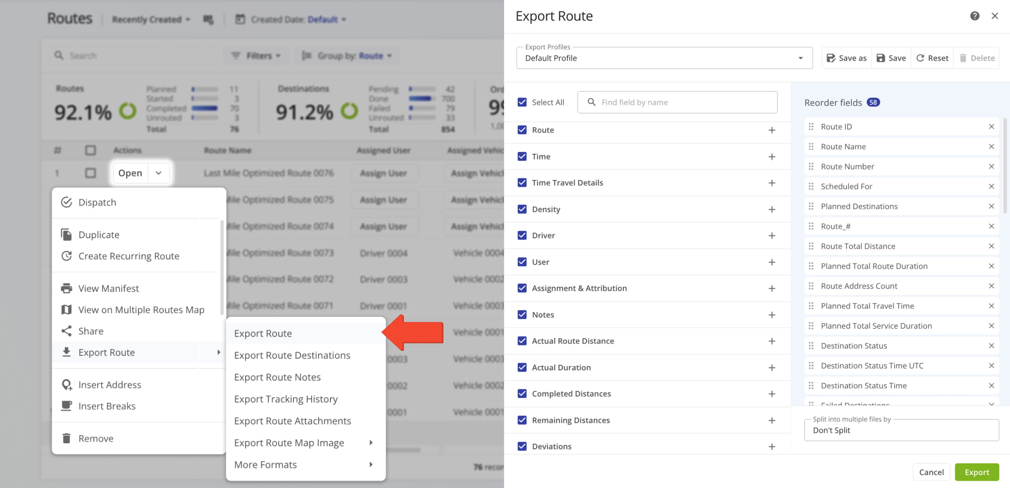 Exporting routes, orders, locations, and other data from your primary account is a quick way to get data for testing tools and features right away, without manually formatting last mile data.
