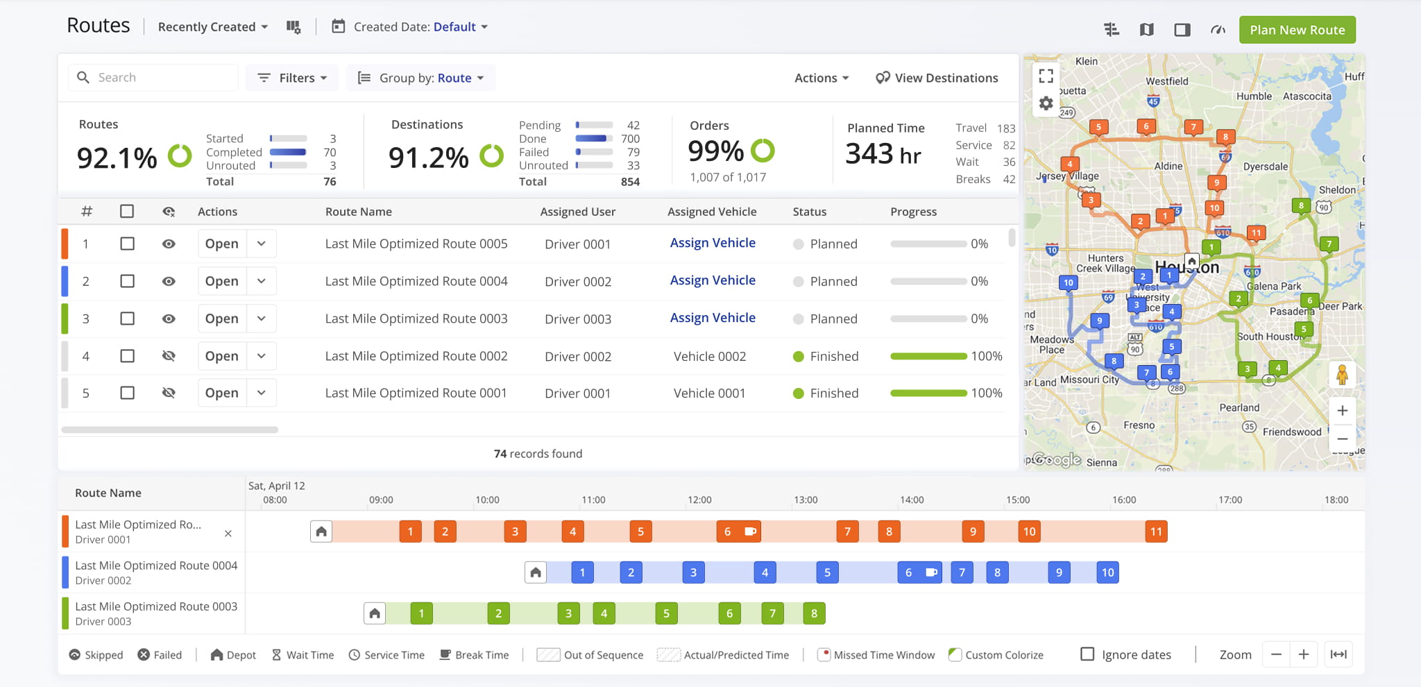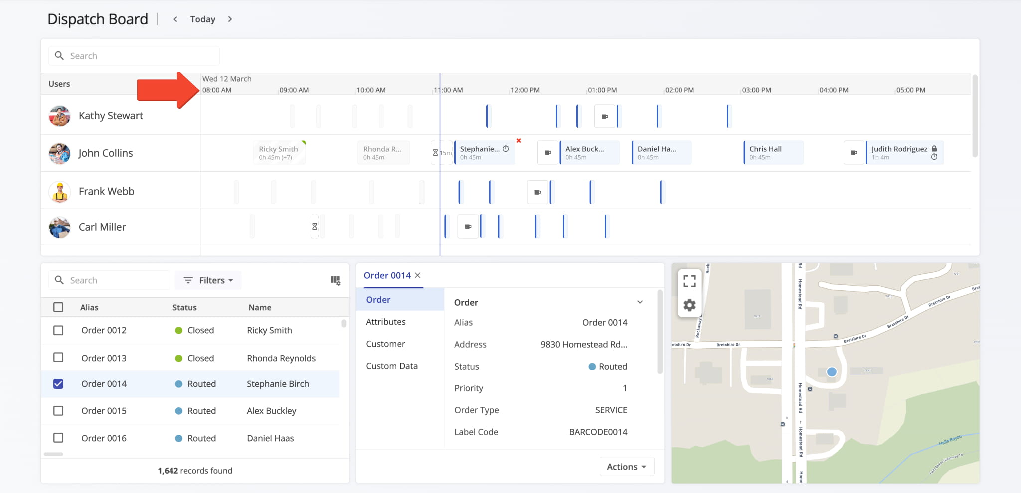 The Dispatch Board shows route schedules, which are based on your browser’s time zone. If you manage routes across multiple time zones, the times you see will still reflect your local time, not the local time of the routes.