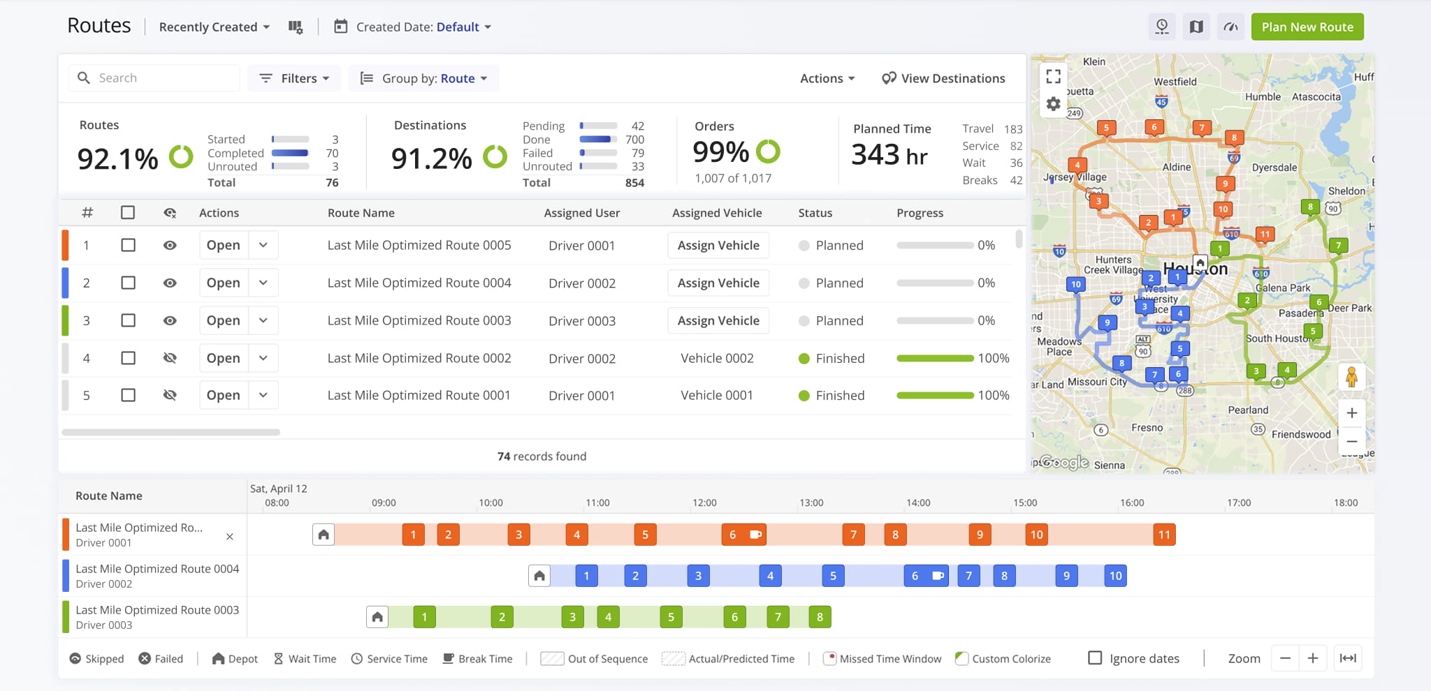 It’s important to keep this in mind when working with routes, drivers, or addresses in different regions, as the displayed times may differ from the actual local time where the route is being executed.