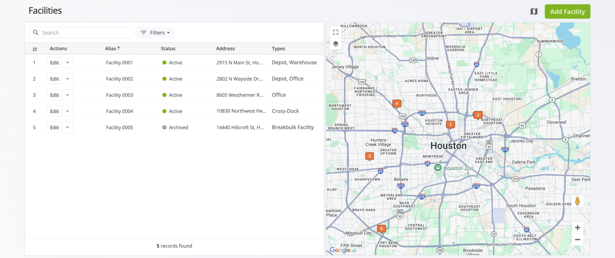 This can cause confusion when a Facility is in a different time zone or a route crosses regions, which is important to consider when planning multi-region routes. To access facilities, go to “Database” > “Facilities” from the Navigation Menu.