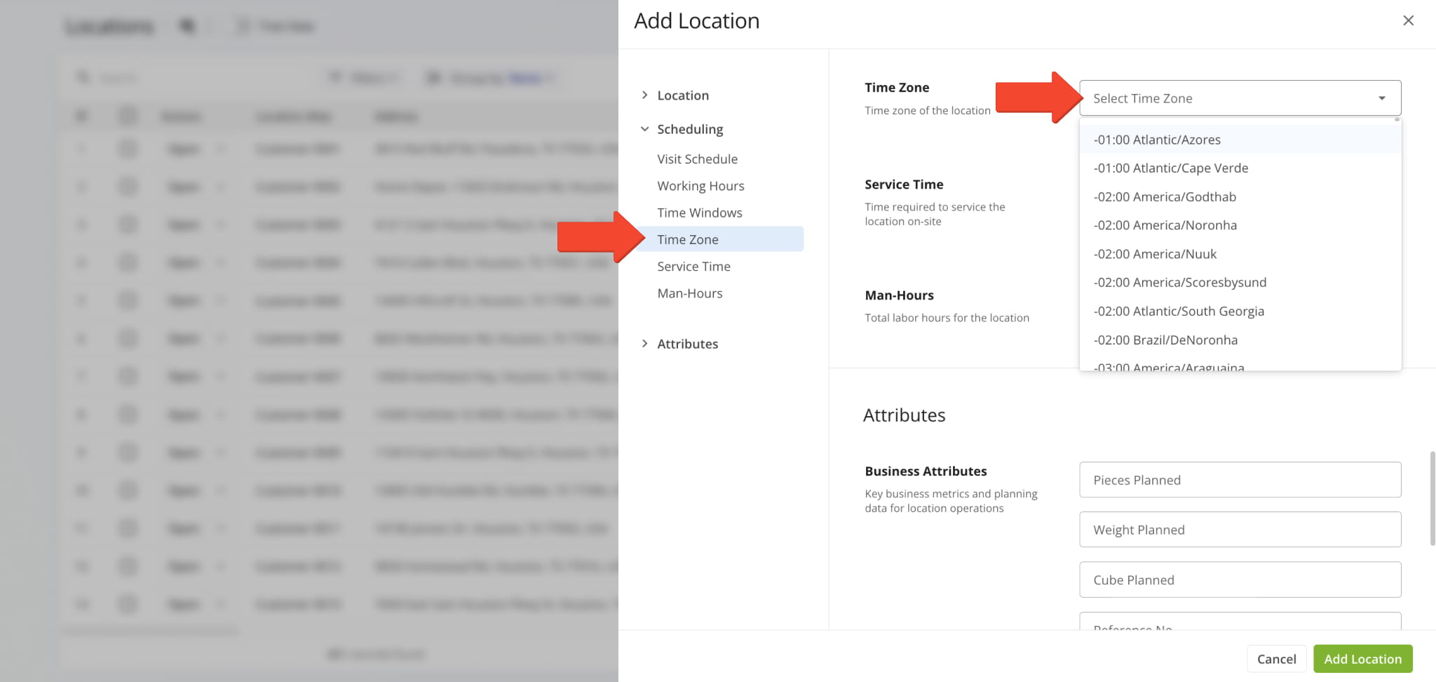 The time zone in a Location is for reference only. You can set it and view it, but it won’t change how routes are scheduled. To access Location settings, go to “Database” > “Locations” from the Navigation Menu.
