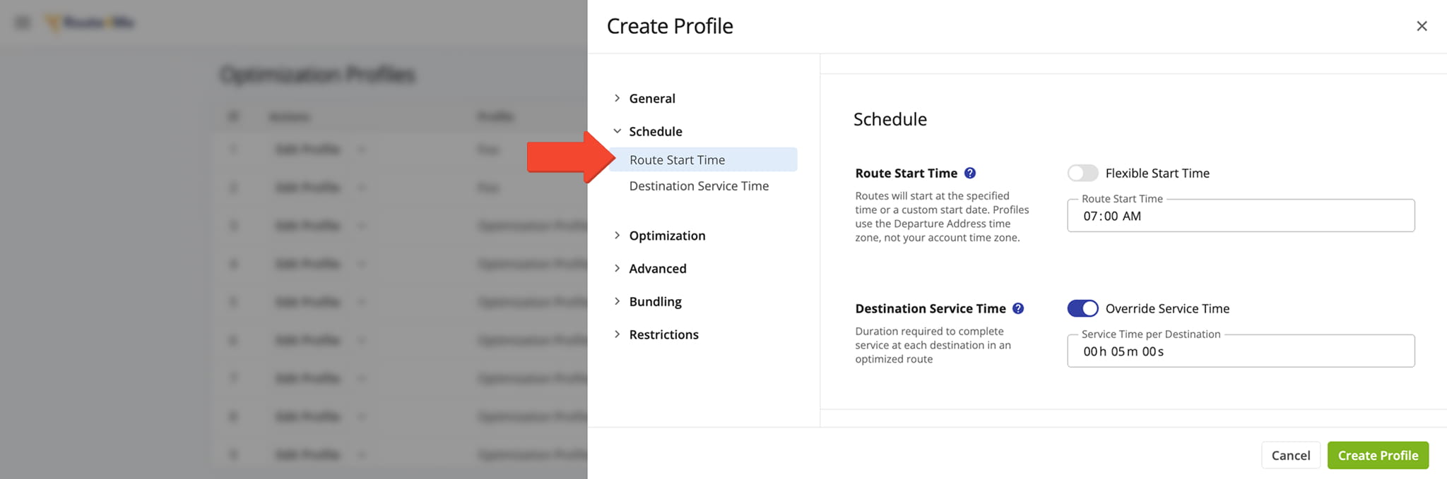 Optimization Profiles – Scheduled Route Start Time