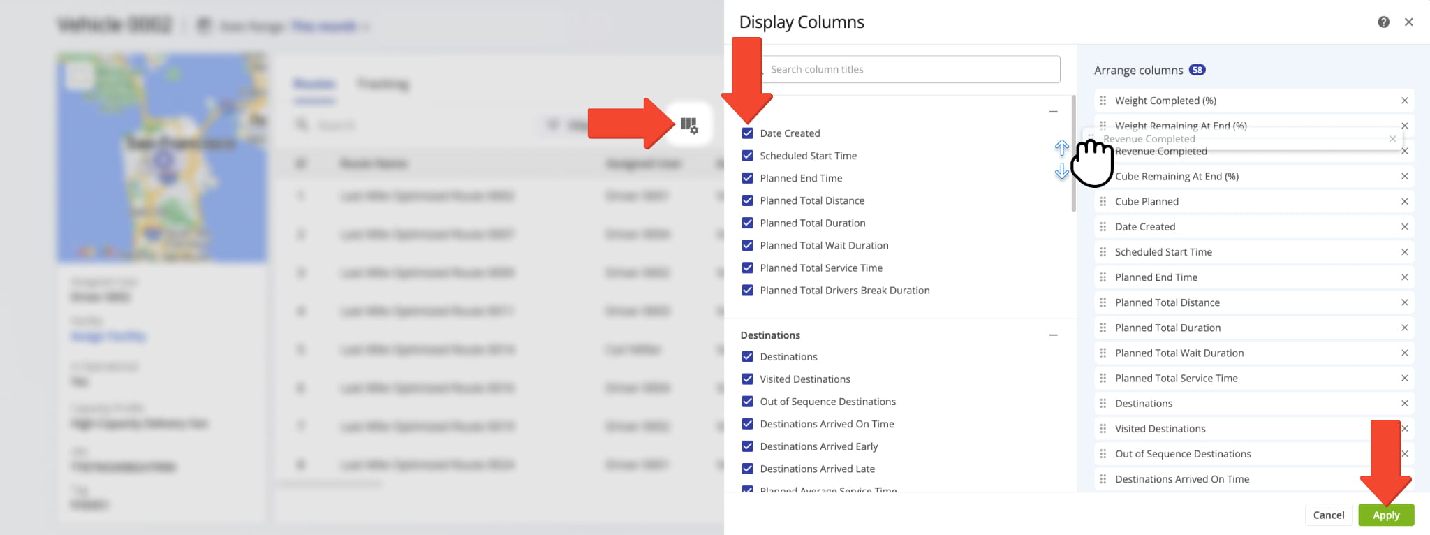Route Data Table – Customize And Re-Order Vehicle Snapshot Data Columns