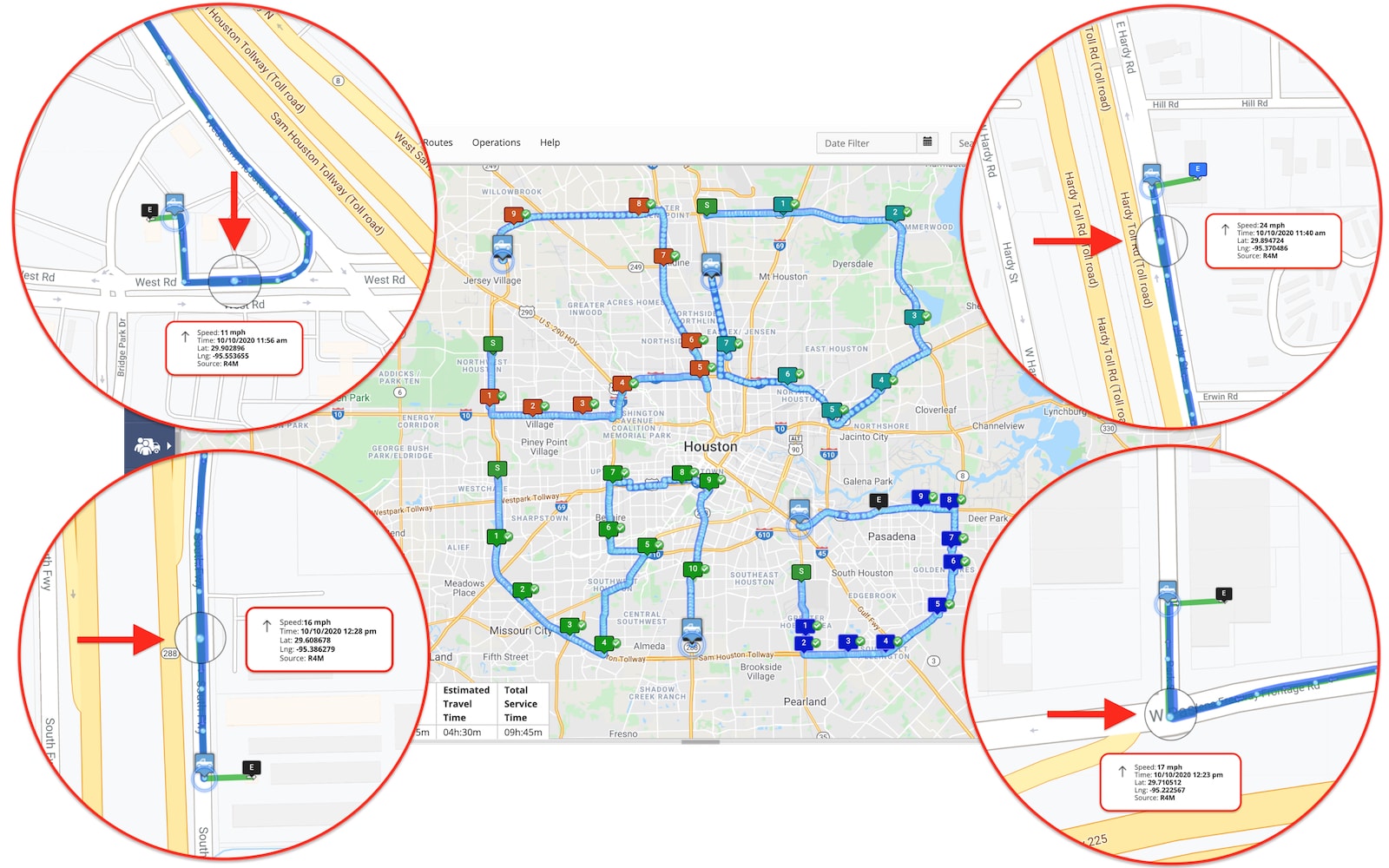 Ứng dụng định tuyến xe tải hay phần mềm định tuyến xe tải tốt nhất sẽ không chỉ giúp bạn lập kế hoạch và tối ưu hóa các tuyến đường xe tải mà còn theo dõi tiến độ tuyến đường. Với công cụ định tuyến xe tải của Route4Me, bạn có thể theo dõi tài xế qua bản đồ trực tiếp trong khi họ điều hướng trên tuyến đường đã lập kế hoạch. Ngoài ra, bạn cũng có thể xem hoạt động tuyến đường của tài xế sau khi hoàn thành dưới dạng video hoạt hình với phương tiện đang di chuyển trên bản đồ.